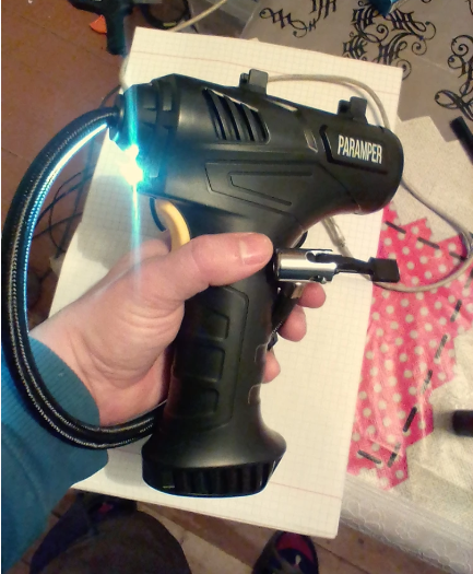 Очень удобный и стильный, прекрасно сидит в руке. Подкачал колеса, занес, накачал все мячи, которые были- был приятно удивлен работоспособности компрессора. Мал да удал